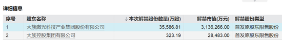 解禁市值第二大的富派别控解禁推进为富家激光科技产业集团股份有限公司、富家控股集团有限公司,辞别为富派别控第一、第五大推进。